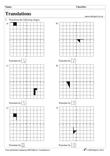 8th Grade Algebra Worksheets | Online Printable PDFs These 8th grade math worksheets represent problems like equations, word problems, long format questions, etc. in the simplest visual manner where students can understand the concepts clearly and in a detailed step-by-step procedure. Algebra worksheets for grade 8 by Cuemath provide answer keys as well for students to refer to for help as and ... Transformation Worksheets | Translation, Reflection, Rotation What's more, thanks to the wide-ranging and multi-grade exercises incorporated here, students get a masterful insight into the three transformations - rotation, reflection, and translation of shapes. This batch of worksheets is highly recommended for the students of grade 2 through grade 8. CCSS: 8.G Transformation Worksheets - Math Worksheets 4 Kids Transformation of Shapes Translate, reflect or rotate the shapes and draw the transformed image on the grid. Each printable worksheet has eight practice problems. Transformation of Triangles Draw the transformed image of each triangle. The type of transformation to be performed is described above each question. Transformation of Quadrilaterals Translation Math Worksheets Grade 8, Transformations ... This Transformations Worksheet will produce problems for practicing translations rotations and reflections of objects. 8th Grade Math Worksheets. Geometry of 2D shapes Grade 8 Maths Measurement Grade 8 Worksheet Area and Perimeter of 2D Shapes. So the component form of the vector is. Flip Slide and Turn Worksheets.